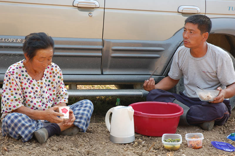 수연씨는 논에서 일하다 말고 고장 난 콤바인을 고치고 있을 남편이 걱정 됐는지 빨간 플라스틱 대야에 먹을 것을 주섬주섬 챙긴다.