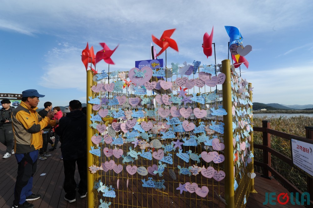 필자와 일행은 축제장을 찾은 인파가 별로 찾지 않은 목리교까지 가서 다리를 건넌 다음, 강 반대편 탐방로와 강둑, 그리고 부잔교를 거쳐 다시 돌아오는 코스를 걷고 또 걸었다. 주무대를 벗어난 탐방로에는 인적이 드물었지만 그래도 군데군데서 탐방객의 모습을 발견할 수 있었다. 밀회를 즐기는 청춘 남녀의 모습도 눈에 띄었고, 쓸쓸한 뒷모습으로 아이들과 함께 벤치에 안아있는 여성의 모습도 발견할 수 있었다.
