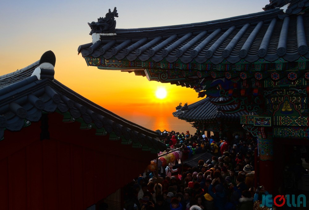 향일암은 많은 소원이 이뤄진다는 관음기도처일 뿐 아니라 수평선 위로 떠오르는 해를 오롯이 볼 수 있어 많은 사람이 찾는 곳이다.