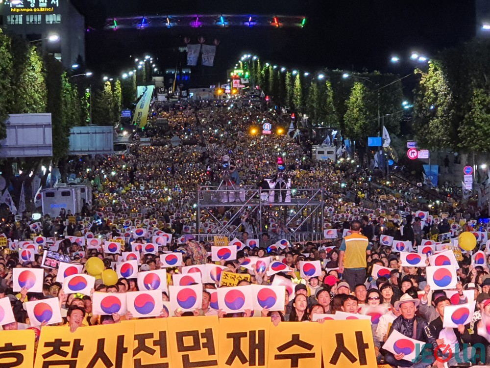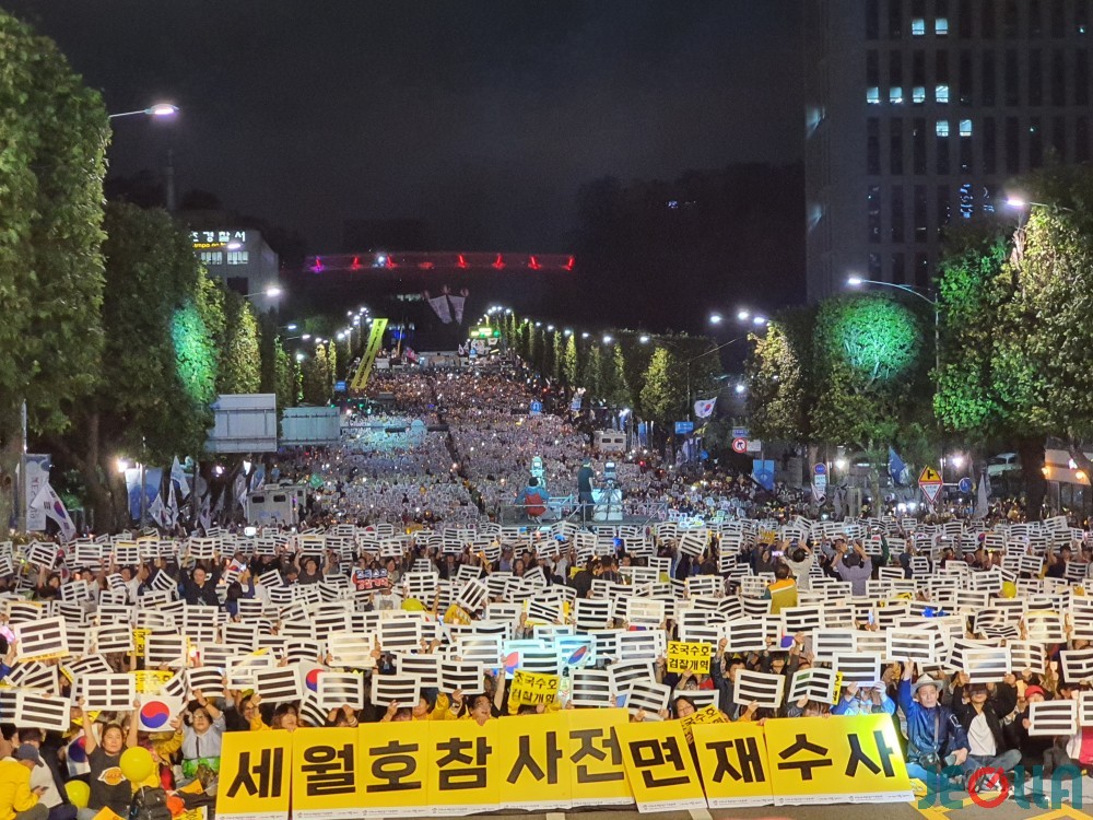 집회 인파는 서초역사거리에 설치된 중앙무대를 중심으로 강남성모병원 방향으로는 누에다리까지, 이수 방향으로는 서리풀터널 앞까지 꽉 들어찼다. 또 강남역 방향으로는 교대역 사거리까지, 예술의 전당 방향으로는 우면산터널까지 발 디딜 틈 없이 들어찼다. 집회 인파가 8~9차선 도로를 차지한 것도 모자라 인도까지 점령했다.