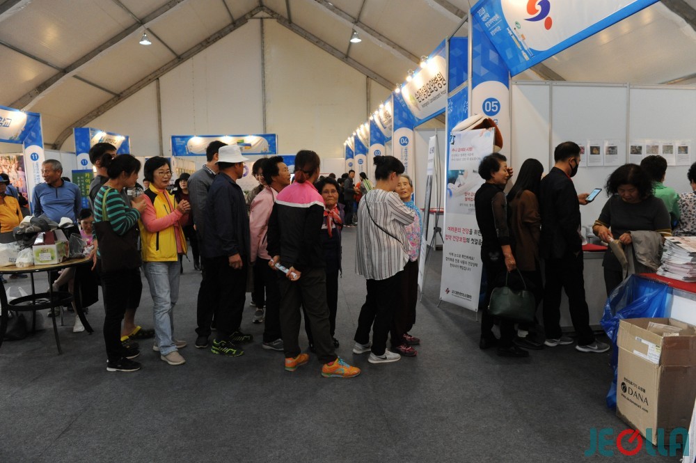• 장흥 통합박람회가 열리고 있는 9일, 박람회장에는 건강에 관심 있는 인파가 대거 몰렸다. 그들은 건강 보조기를 직접 체험하거나, 자신의 건강 수치를 측정하기도 했다.