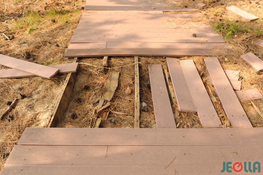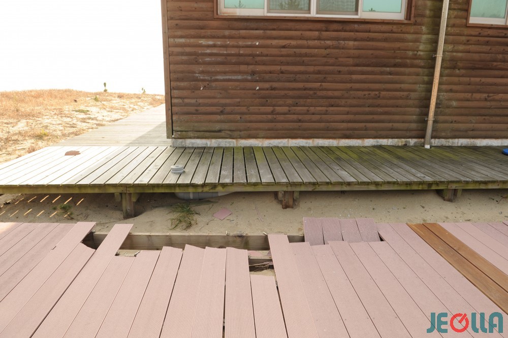 완도군이 블루플래그 재인증 추진하고 있는 명사십리해수욕장의 관리 실태가 엉망이다. 해수욕장 송림을 따라 관광객들이 걸어 다닐 수 있게 조성된 데크가 부서지거나 움푹 패여 관광객들의 안전을 위협하고 있다.