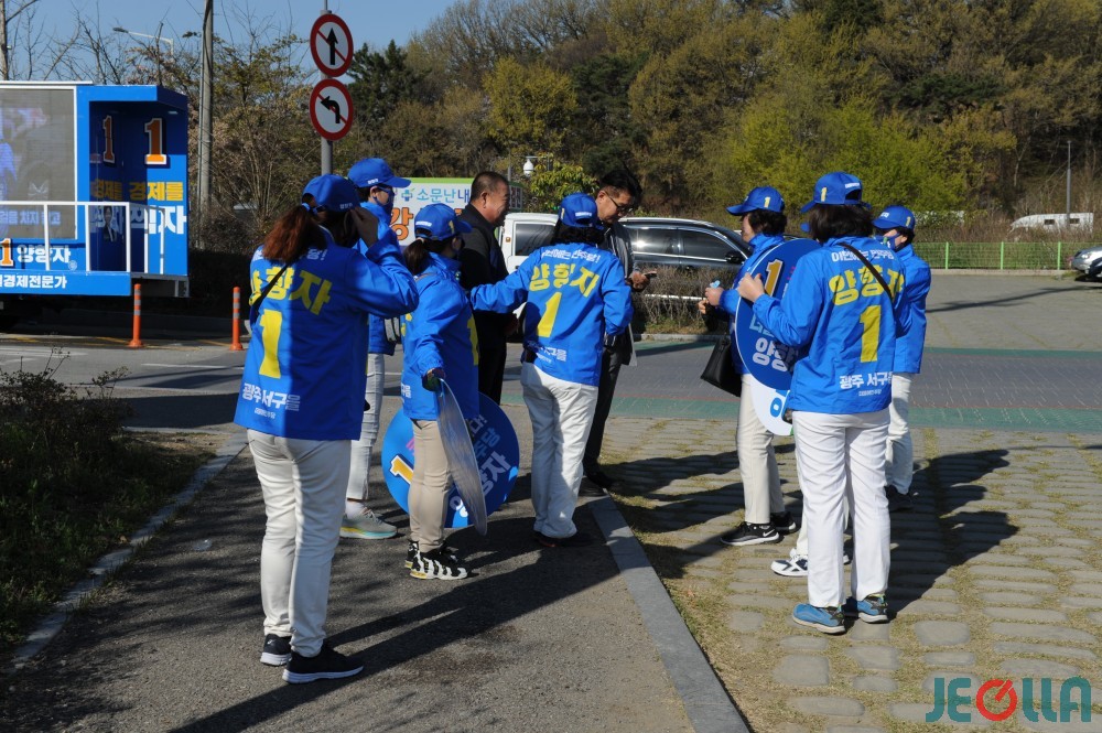 5일, 광주 서구을 양향자 후보가 풍암호수공원에서 도보유세를 가졌다. 수년 동안 텃밭을 다져온 덕분인지 양 후보를 살갑게 맞아주는 시민들이 많았다.