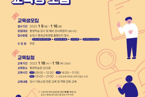 순천시, 2023년 평생학습 강사학교 교육생 모집