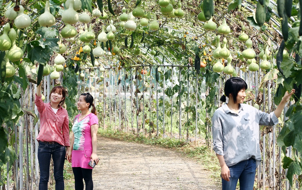 가을 재촉하는 조롱박 터널