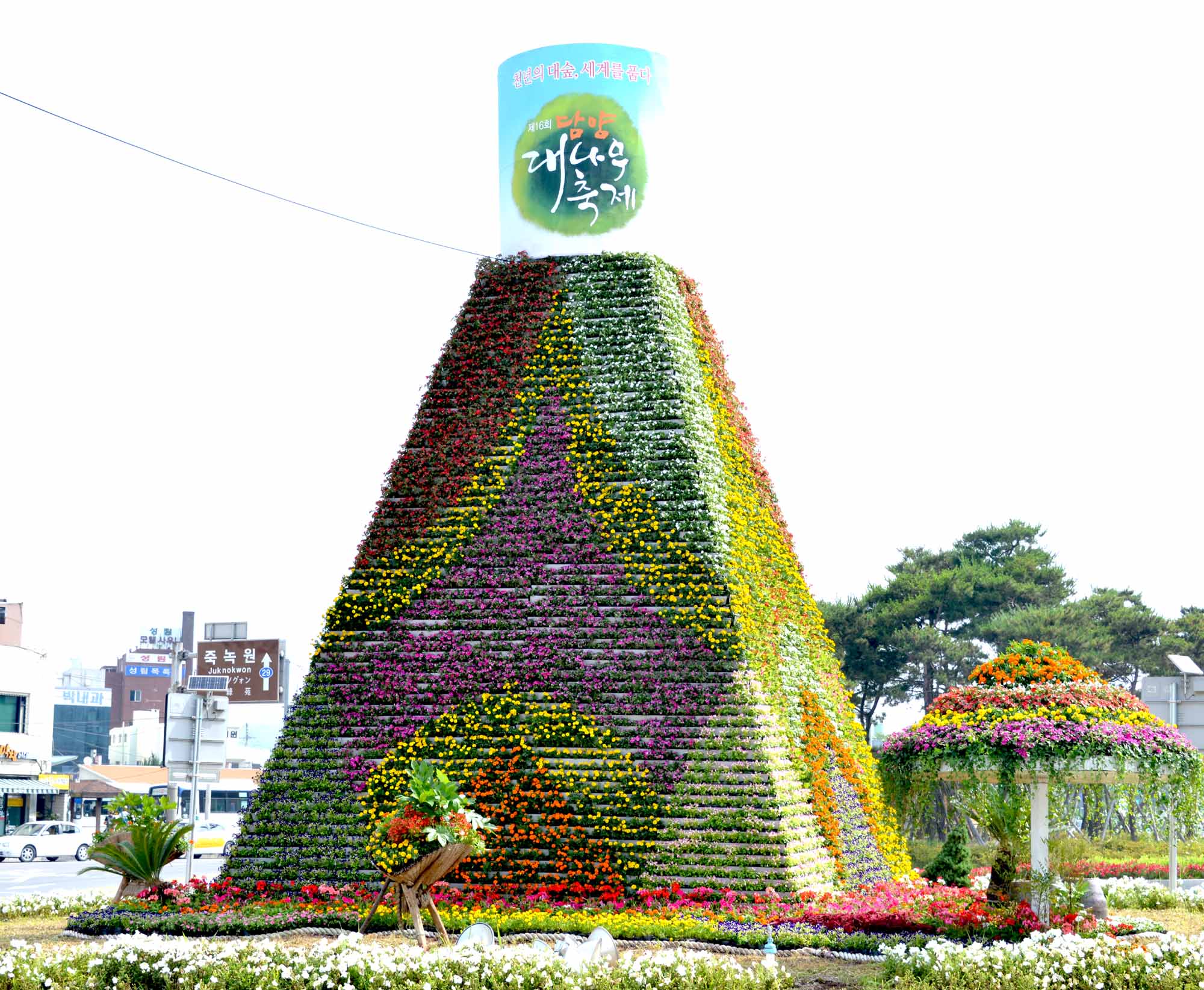 관광객 눈길 사로잡는 담양대나무축제 ‘꽃탑’