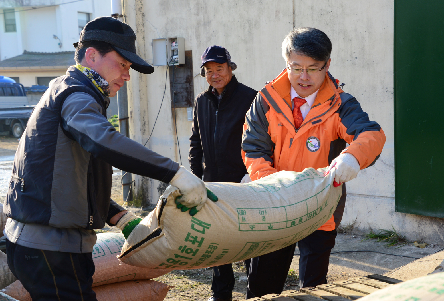민형배 광산구청장, 공공비축미곡 매입 현장 일손 거들어