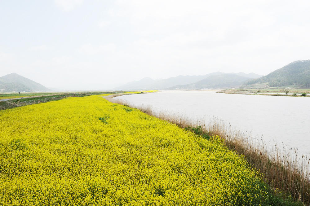 철새가 떠난 자리에 노란 유채꽃이