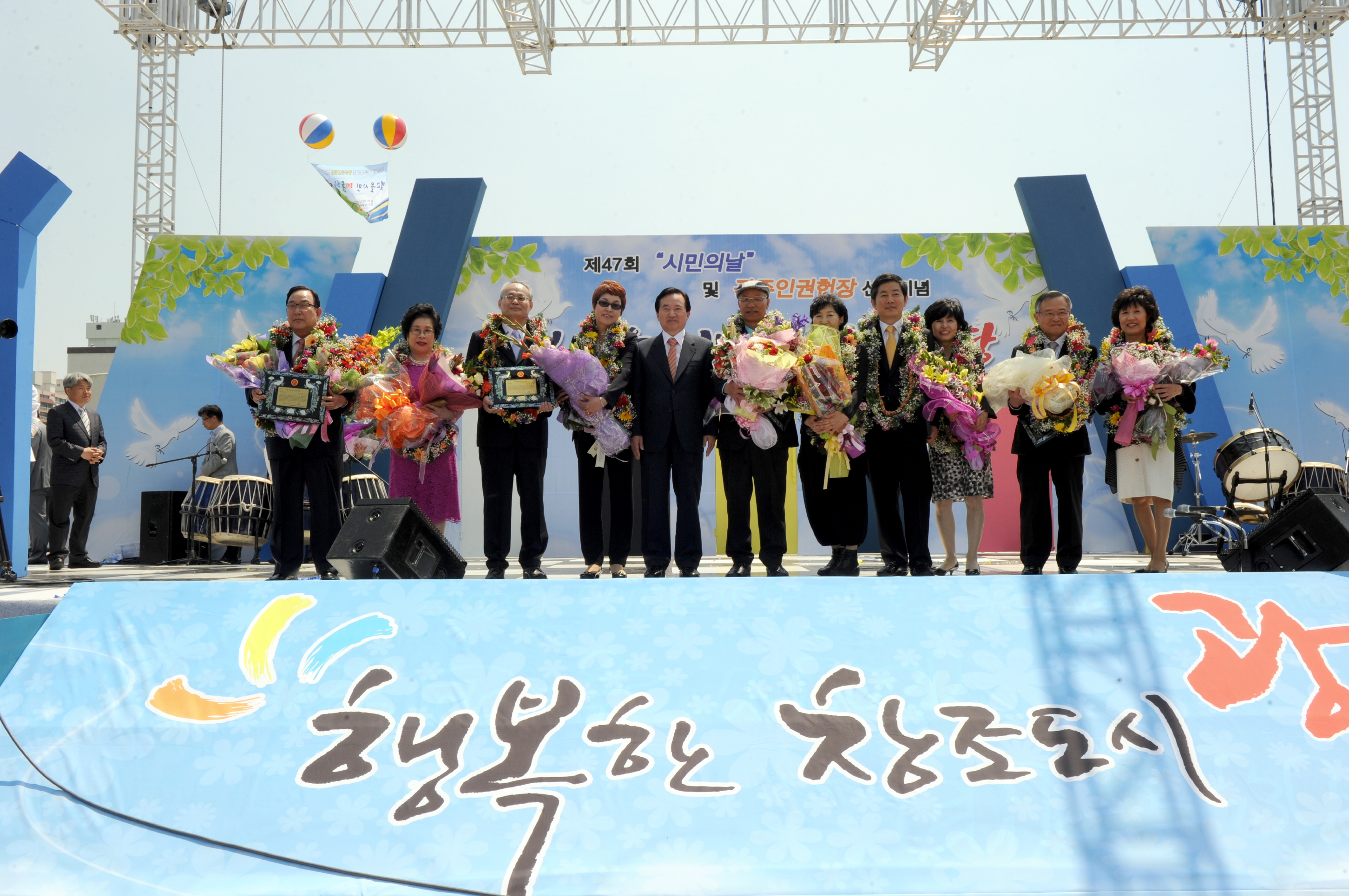 강운태 시장이 시민대상 시상 후 수상자와 기념촬영