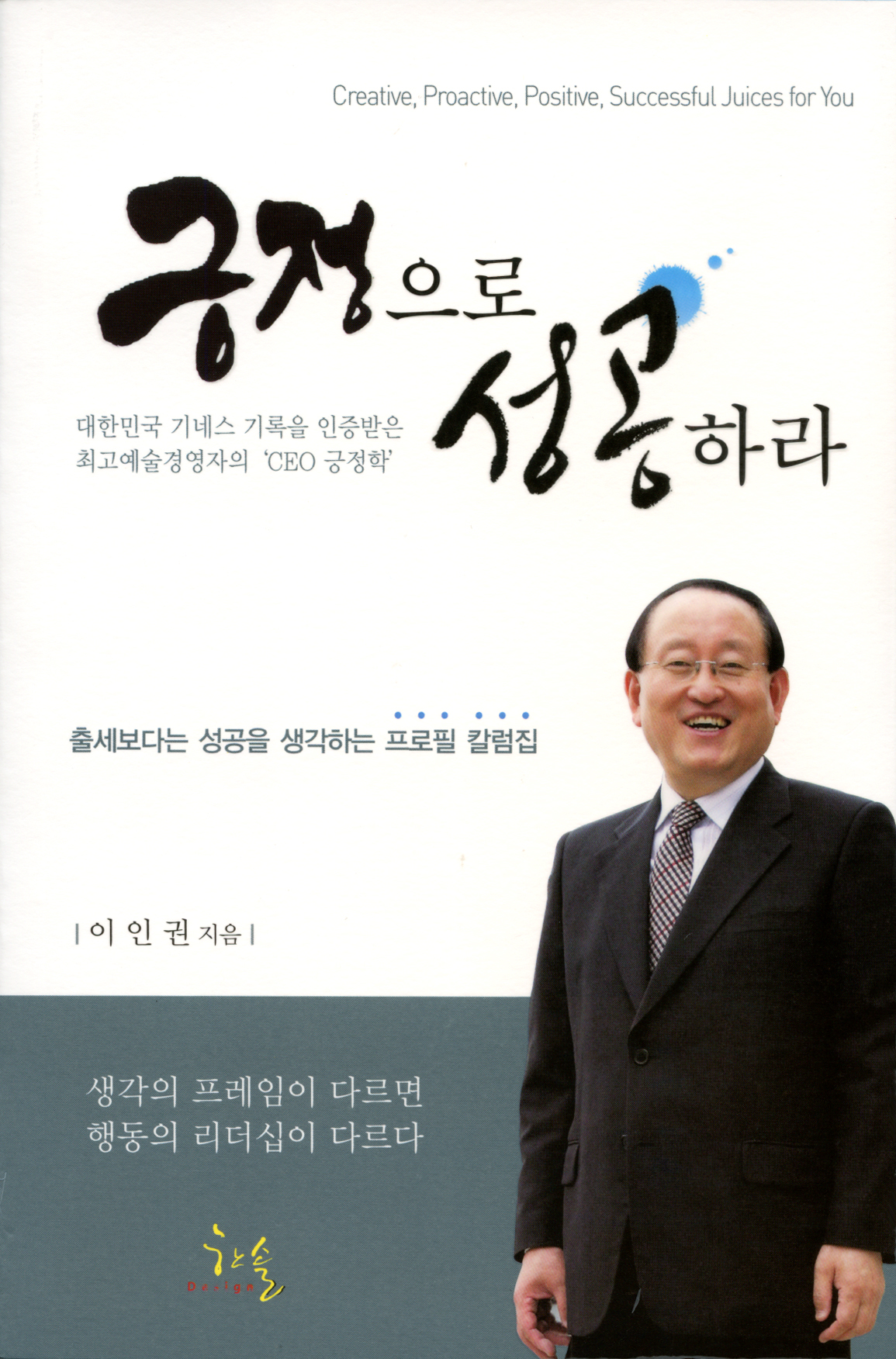 한국소리문화의전당 이인권 대표가 그동안 일간지와 영자지에 써온 칼럼과 오랫동안 전문 분야에서 활동해 온 자료들을 한데 묶어 새로운 콘셉트의 책 <긍정으로 성공하라>를 출간했다. ‘출세보다는 성공을 생각하는 프로필 칼럼집’으로 출간된 이 책에는 이 대표의 창의적 감성과 전문적 역량, 그리고 글로벌 감각의 바탕에서..