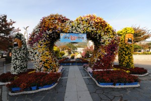 해남문화예술회관 광장을 메운 국화작품