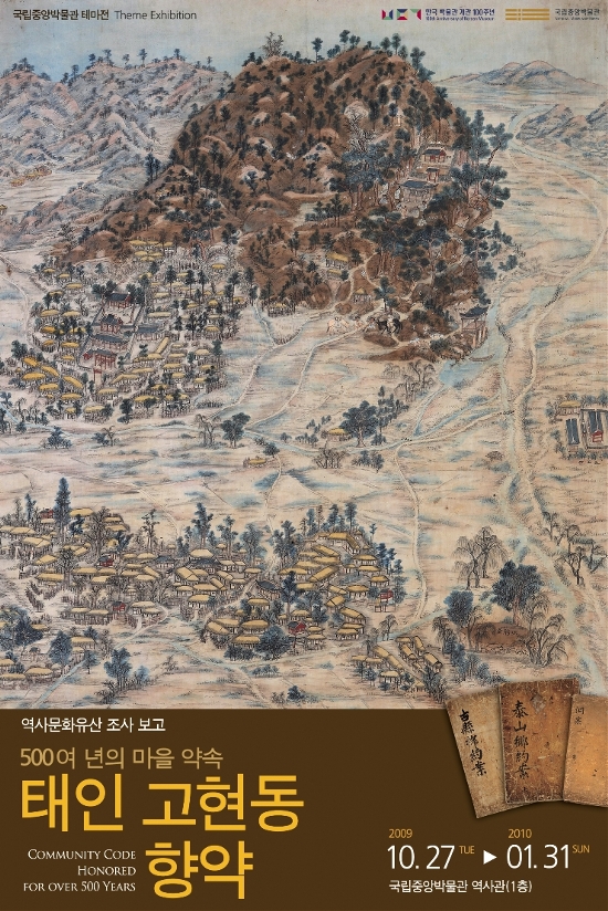 국립중앙박물관이 10월27일부터 2010년 1월31일까지 역사문화유산 조사사업의 성과를 공개하는 테마전 ‘500여 년의 마을 약속 - 태인 고현동 향약’을 개최한다. ‘향약’(鄕約)은 조선시대 향촌사회의 자치규약이다. 시행시기나 지역에 따라 다양한 내용을 담고 있으나, 기본적으로 유교적인 예속을 ..